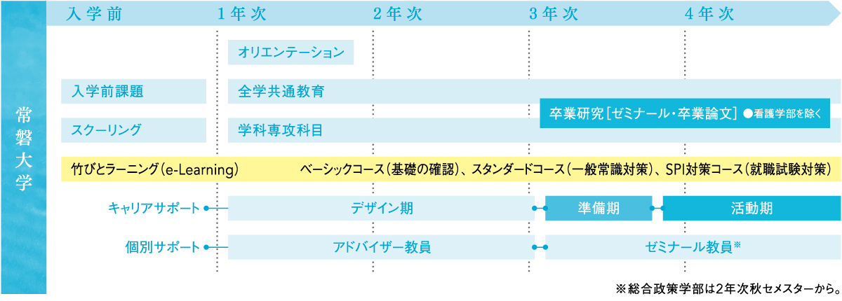常磐大学では、実り多い学生生活を送るためのサポートが充実。入学前教育から始まり、考え抜かれたカリキュラム、ゼミナール・卒業研究、卒業後の進路に向けたキャリアサポートまで、一人ひとりの学生をしっかり見守ります。